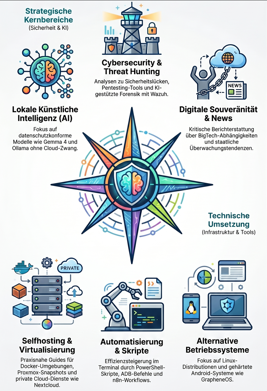 My work centers on network security and AI. I built this site to contribute to stronger security and greater data sovereignty in the digital era. A deep commitment to network security and a long-standing affinity for Linux drive me to keep learning and to share that knowledge in a clear, accessible way.