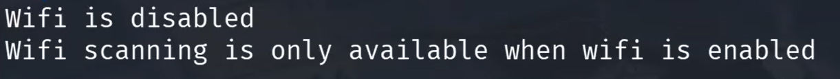 The current state of the Wi-Fi chip can be queried to see if it is enabled or currently scanning. This is done with the status subcommand.