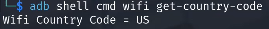 Additionally, the regulatory domain can be checked using get-country-code. This returns the two-letter code (e.g., US, DE) that dictates which frequencies and power levels the Wi-Fi chip is allowed to use.